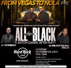 Dance the night away at the NOLA All Black Affair & Bayou Classic Takeover—celebration, style, and unforgettable vibes!Welcome to the All Black Affair & Bayou Classic After Party at Hard Rock Cafe! Get ready for a night of fun and celebration on November 29, 2025 at 9:00 PM. Join us for great music, delicious food, and unforgettable memories.